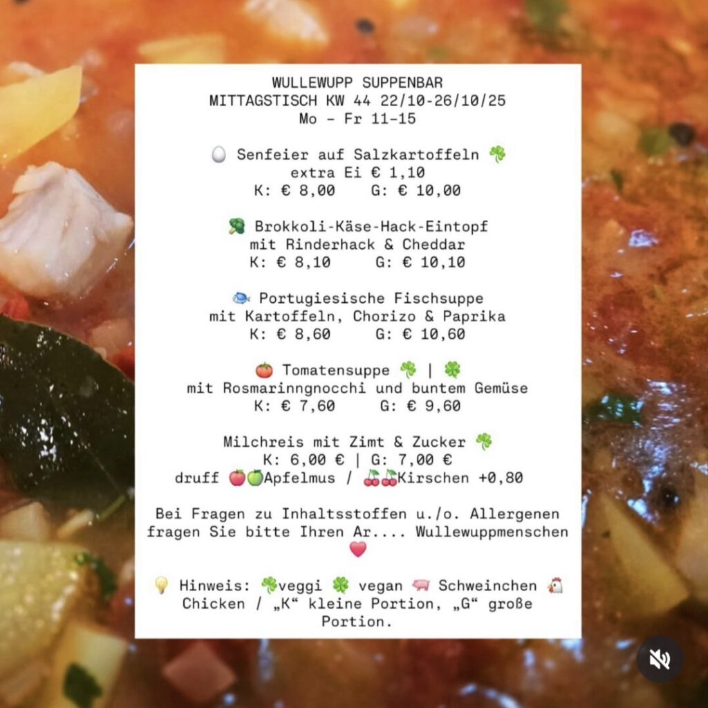 ⚠️ SuppenBar FR+SA 18-22 Uhr muss leider wg. Caterings erstmal ausfallen. Sry